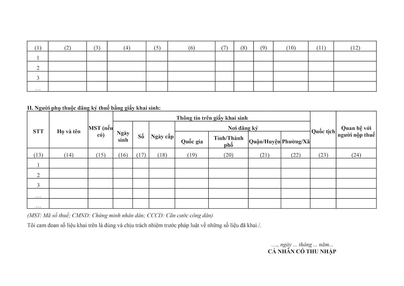 Mẫu số 20-ĐK-TCT Tờ khai đăng ký người phụ thuộc